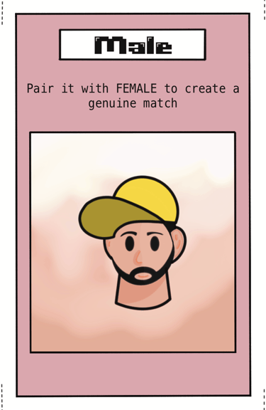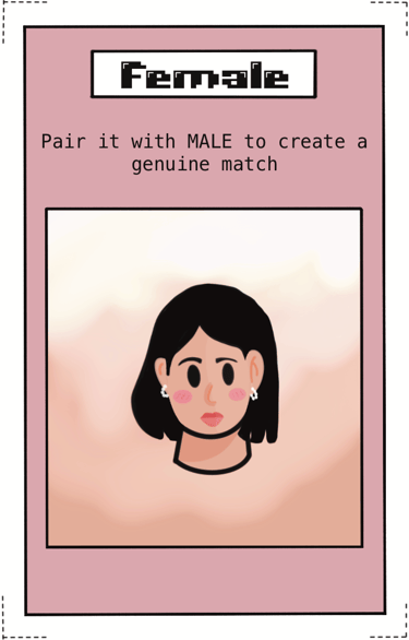 Example: Female and Male is a 1 set of pair, similarly need to make 2 more genuine pair sets for winning.